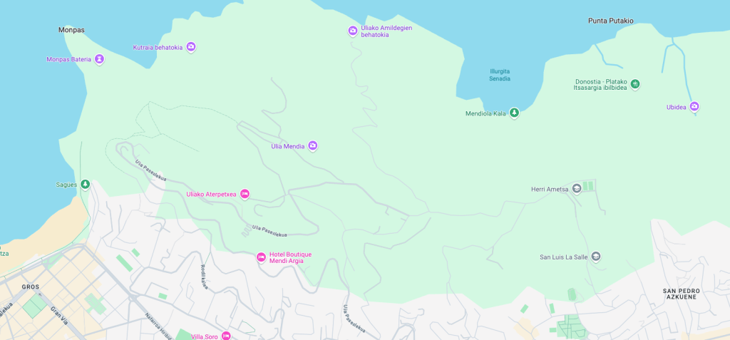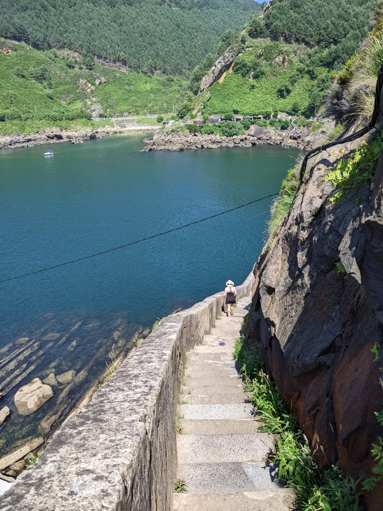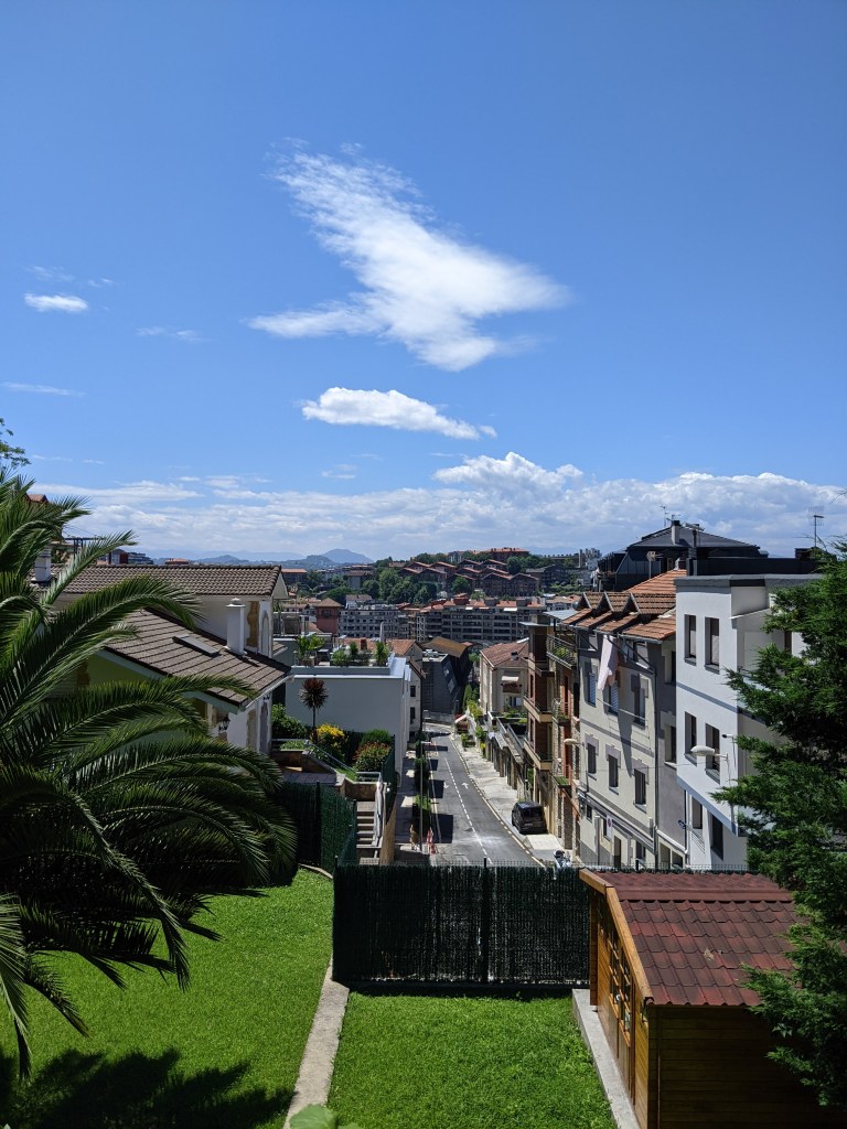 It was a huge set of white stone stairs going straight up. To me, this was an indication that we were on the right path. The stairs made their way though a tunnel of trees and ended on another paved road. At this point, we really didn’t have any idea where we were going and each step further was going to make the walk home even longer. We were still on a marked road in Google Maps, but that didn’t look promising as it ended somewhere in the middle of the mountain. Walking along the moss covered sidewalk, there was a restaurant to our left that had a Michilien star, classic San Sebastian. Other than the restaurant and a few larger homes, there was not much development in the area.