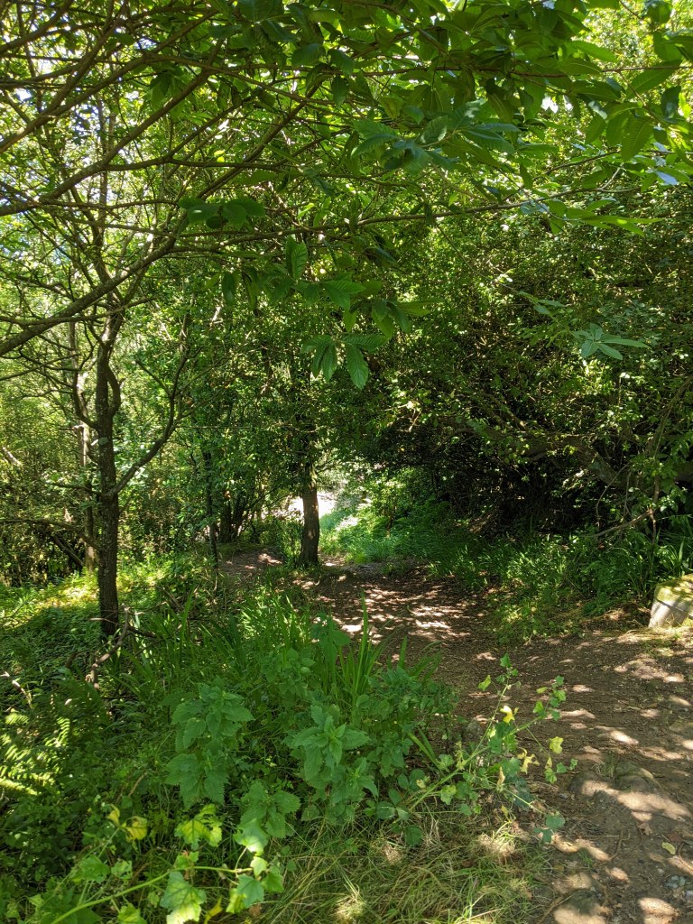 Past the restaurant, we walked on a bridge with a downwards view and there it was, the trail! We were so happy to have finally found it. It was obviously what we were looking for, people were hiking on it and it was gravel instead of asphalt. We went back towards the restaurant looking for the entrance, but couldn’t find anything. Then we walked past the bridge and found a way down. It was steep, almost like a bike path or a water rundown area.